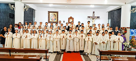 La preparación para recibir por primera vez el sacramento de la Eucaristía consta de un periodo de dos años, comenzando en tercer grado de primaria (Pre-Comunión) y terminando con la celebración de la Primera Comunión en cuarto grado de primaria.